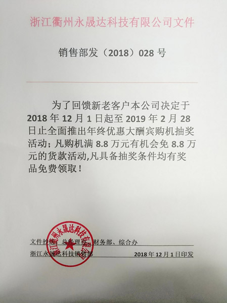 永晟達(dá)年終優(yōu)惠大酬賓抽獎活動,感恩回饋新老客戶!